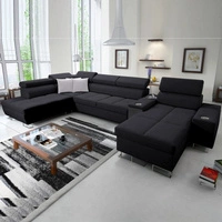 Ecksofa mit Schlaffunktion Dafni V schwarz rechts geflochtenes bequemes Ecksofa mit verstellbaren Kopfstützen