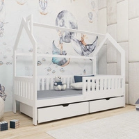 Dyzio Kinderbett 80x180 cm weiß 2-Personen-Ausziehbett für Kinderzimmer Holzhausbett mit geräumigen Schubladen