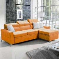 Ecksofa mit Schlaffunktion Rava gelb rechts Samt komfortables und funktionelles Ecksofa mit verstellbaren Kopfstützen