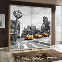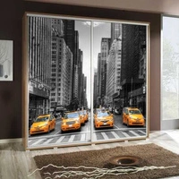 Artistino 205 cm Schiebeschrank mit Treppe Taxi Grafik Schrankkorpus in Eiche Catania aus 22mm starker Platte