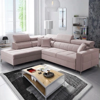 Ecksofa mit Schlaffunktion Nausa III puderrosa links Samt stilvolles bequemes Ecksofa verstellbare Kopfstützen Bettzeugcontainer