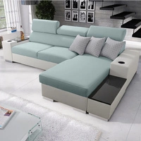 Ecksofa mit Schlaffunktion Provo arktikblau/weiß rechtes Ecksofa mit Bettzeugablage und Funktionsauszug