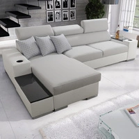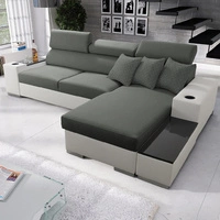 Ecksofa mit Schlaffunktion Provo III grau / weiß rechtes Ecksofa mit Bettzeugablage und verstellbaren Kopfstützen