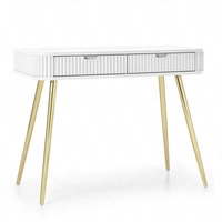Zoya weiß Konsole mit Schubladen stilvolle und funktionale Schminktisch geschwungene massive Form geriffelte Schubladenfronten goldene Beine