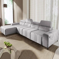 Ecksofa mit Schlaffunktion Castel XII grau Esche linke Seite stilvolles und bequemes Ecksofa für Wohnzimmer funktionelle verstellbare Kopfstützen