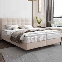 Boxspringbett Norco 90x200 beige stilvolles Bett mit Bettzeug Lagerung Beleuchtung im Kopfteil fügt eine einzigartige Note