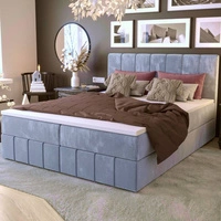 Boxspringbett Manhattan 160x200 hellblau Bett im modernen skandinavischen Stil mit gepolstertem Kopf- und Fußteil