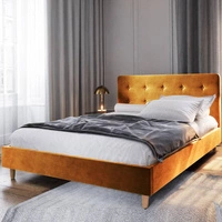 Polsterbett Noiro 140x200 senf mit Container im modernen skandinavischen Stil mit markantem Kopfteil