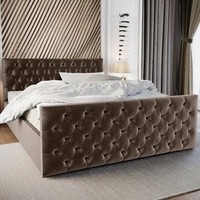 Polsterbett Viamao 160x200 kastanienbraun mit Container im modernen skandinavischen Stil mit gestepptem Kopfteil und Fußteil