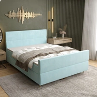 Boxspringbett Benet 160x200 Hellblau moderner skandinavischer Stil mit charakteristischem Kopfteil Kontinentale Bett