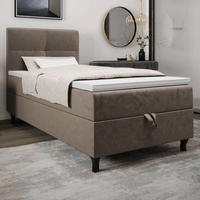 Boxspringbett Fresno 90x200 hellbraun im modernen skandinavischen Stil mit gepolstertem Kopfteil Bett mit Staukasten