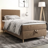 Boxspringbett Bing 100x200 hellbraun im modernen skandinavischen Stil mit gepolstertem Kopfteil Bett mit Staukasten