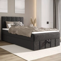 Boxspringbett Benet 90x200 schwarzes im modernen skandinavischen Stil mit gepolstertem Kopf- und Fußteil Bett mit Staukasten