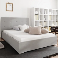 Polsterbett Verlan 180x200 beige mit Container im modernen skandinavischen Stil mit gestepptem Kopf- und Fußteil