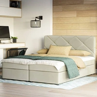 Boxspringbett Flint 100x200 beige im modernen skandinavischen Stil mit gepolstertem Kopfteil Bett mit Staukasten