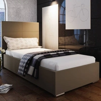 Eljas Polsterbett 90x200 dunkelbeige mit modernem Kopfteil ideal für Jugendzimmer oder kleine Schlafzimmer