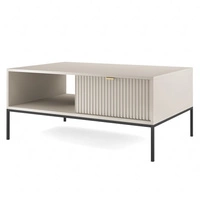 Couchtisch Kioto III beige mit Schublade elegante Konstruktion verstärkt mit Metallrahmen in Gold Farbe subtilen Griff