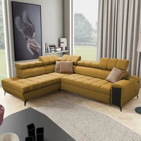 Ecksofa mit Schlaffunktion Bolmso VII Senfgelb links elegantes Ecksofa für Wohnzimmer mit Schublade und Bettzeugcontainer