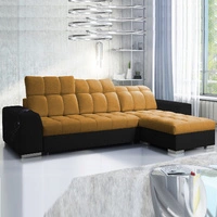 Ecksofa mit Schlaffunktion Fogu II Honig Gelb right stilvolles Ecksofa mit bequemen Armlehnen und einem Bettkasten