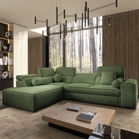 Ecksofa mit Schlaffunktion Viano VII grün links trendiges und stilvolles Ecksofa mit verstellbaren Kopfstützen Zierkissen