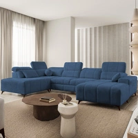 Ecksofa mit Schlaffunktion Fogu U II blau bequemes Ecksofa mit bequemen Armlehnen interessanter Designcontainer für Bettzeug