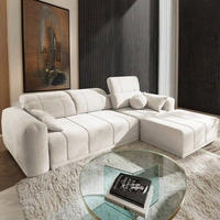Ecksofa mit Schlaffunktion Castel IV beige linke Seite stilvolles Ecksofa mit Bettzeugcontainern und verstellbaren Kopfstützen
