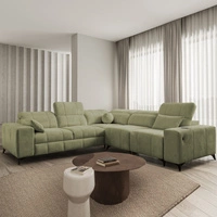 Ecksofa mit Schlaffunktion Penejos II Lux oliv links komfortables Ecksofa für das Wohnzimmer mit bequemer ausziehbarer Fußstütze