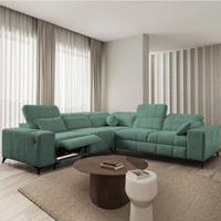 Ecksofa mit Schlaffunktion Penejos III Lux grün linksseitiges Komfort-Ecksofa für das Wohnzimmer mit ausziehbarem Fußteil Bettzeug-Container