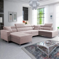 Ecksofa mit Schlaffunktion Nausa VI puderrosa linke Seite stilvolles Ecksofa für Wohnzimmer mit komfortabler Verarbeitung Samt Typ Stoff