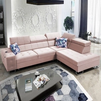 Ecksofa mit Schlaffunktion Hampton VII quarzrosa rechtes Ecksofa für Ihr Zimmer aus Samtstoff mit glatter Oberfläche