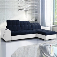 Ecksofa mit Schlaffunktion Luigi II blau / schwarz linkes Komfort für die tägliche Entspannung Ecksofa mit Bettkasten