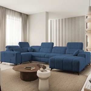 Ecksofa mit Schlaffunktion Penejos IV blau rechtsseitig stilvolles Ecksofa mit zwei Bettkästen strapazierfähiger Stoff