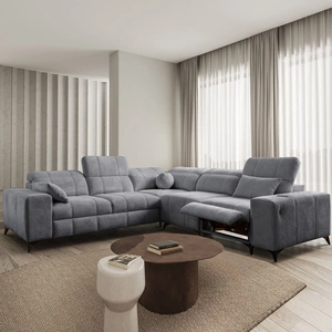 Ecksofa mit Schlaffunktion Penejos III Lux grau rechtsseitiges Komfort-Ecksofa für das Wohnzimmer mit ausziehbarem Fußteil Bettwäsche-Container