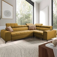 Ecksofa mit Schlaffunktion Bolmso II Senf rechts Ecksofa mit Bettzeugcontainer Vollauszug in der Seite des Möbels