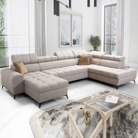 Ecksofa mit Schlaffunktion Bolmso VI beige links bequemes Ecksofa mit verstellbaren Kopfstützen dekorative Steppung auf der Sitzfläche