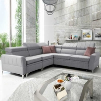 Ecksofa mit Schlaffunktion Rava IV graue Esche links Samt Komfort während der täglichen Ruhezeit Behälter für Bettzeug