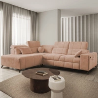 Ecksofa mit Schlaffunktion Penejos IX lachsfarbe links stilvolles Ecksofa mit Bettzeugcontainern komfortable verstellbare Kopfstützen