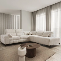 Ecksofa mit Schlaffunktion Penejos IX creme linke Seite stilvolles Ecksofa mit Bettzeugcontainern komfortable verstellbare Kopfstützen