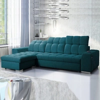 Ecksofa mit Schlaffunktion Rava III blaues Linkshändersamt komfortables Ecksofa mit verstellbaren Kopfstützen und Bettzeugcontainer
