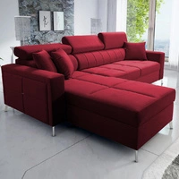 Ecksofa mit Schlaffunktion Nausa burgunderrot links Samt stilvoll bequemes Ecksofa verstellbare Kopfstützen Bettzeug Container