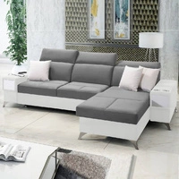 Ecksofa mit Schlaffunktion Elgin grau / weiß rechtes Ecksofa mit verstellbaren Kopfstützen praktische Schubladen in den Möbelseiten