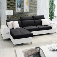 Ecksofa mit Schlaffunktion Elgin schwarz/weiß links Ecksofa mit verstellbaren Kopfstützen praktische Schubladen in Möbelseiten