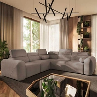Ecksofa mit Schlaffunktion Viano VII grau blau links modisches und stilvolles Ecksofa mit verstellbaren Kopfstützen Zierkissen