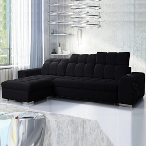 Ecksofa mit Schlaffunktion Elgin schwarz links Ecksofa mit verstellbaren Kopfstützen praktische Schubladen in den Seiten des Möbels
