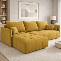 Ecksofa mit Schlaffunktion Selva senfgelb universal seite Ecksofa mit Bettzeugablage aus bequemem Plüschstoff