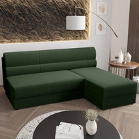 Ecksofa mit Schlaffunktion Bovec II grüne Olive rechts komfortables Ecksofa mit stilvollem Charakter Container für Bettzeug