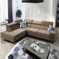 Ecksofa mit Schlaffunktion Hampton VII hellbraunes linkes Ecksofa für Zimmer aus Samtstoff mit glatter Oberfläche