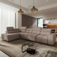 Ecksofa mit Schlaffunktion Castel IV beige linke Seite stilvolles Ecksofa mit Bettzeugcontainern und verstellbaren Kopfstützen