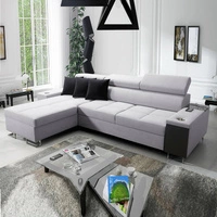 Ecksofa mit Schlaffunktion Castel II beige links komfortables Ecksofa mit verstellbaren Kopfstützen Container für Bettzeug