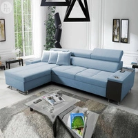 Ecksofa mit Schlaffunktion Castel XI hellblau rechte Seite bequemes Ecksofa mit Bettzeugablage strapazierfähiger Stoff